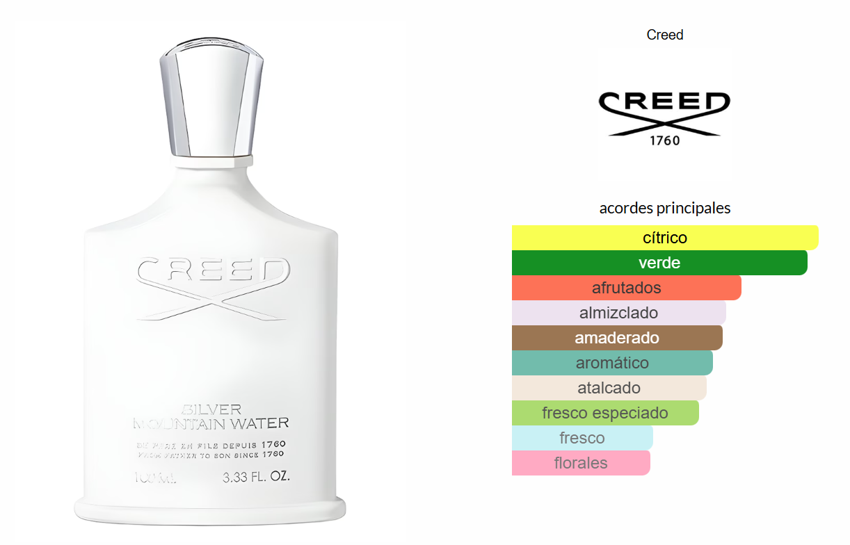 Silver Mountain Water es una de las fragancias más emblemáticas de la casa Creed, inspirada en la pureza de los arroyos de montaña y el aire fresco de los Alpes suizos. Un perfume limpio, vibrante y elegante, ideal para quienes buscan una sensación de lujo natural y atemporal.