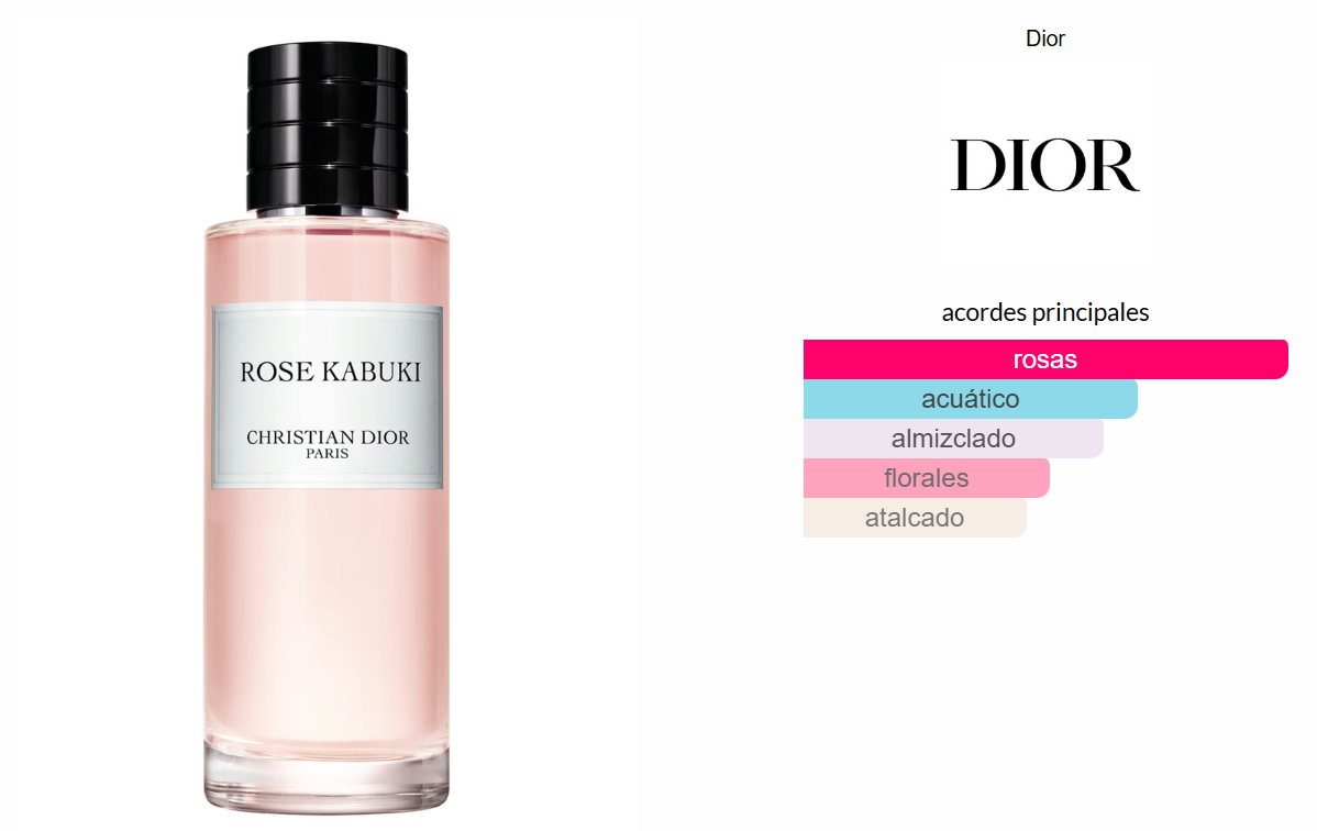 Rose Kabuki es una creación sofisticada de la colección exclusiva Maison Christian Dior, inspirada en la elegancia y el arte del teatro japonés Kabuki. Un perfume limpio, suave y envolvente que reinterpreta la rosa de una forma etérea y contemporánea.