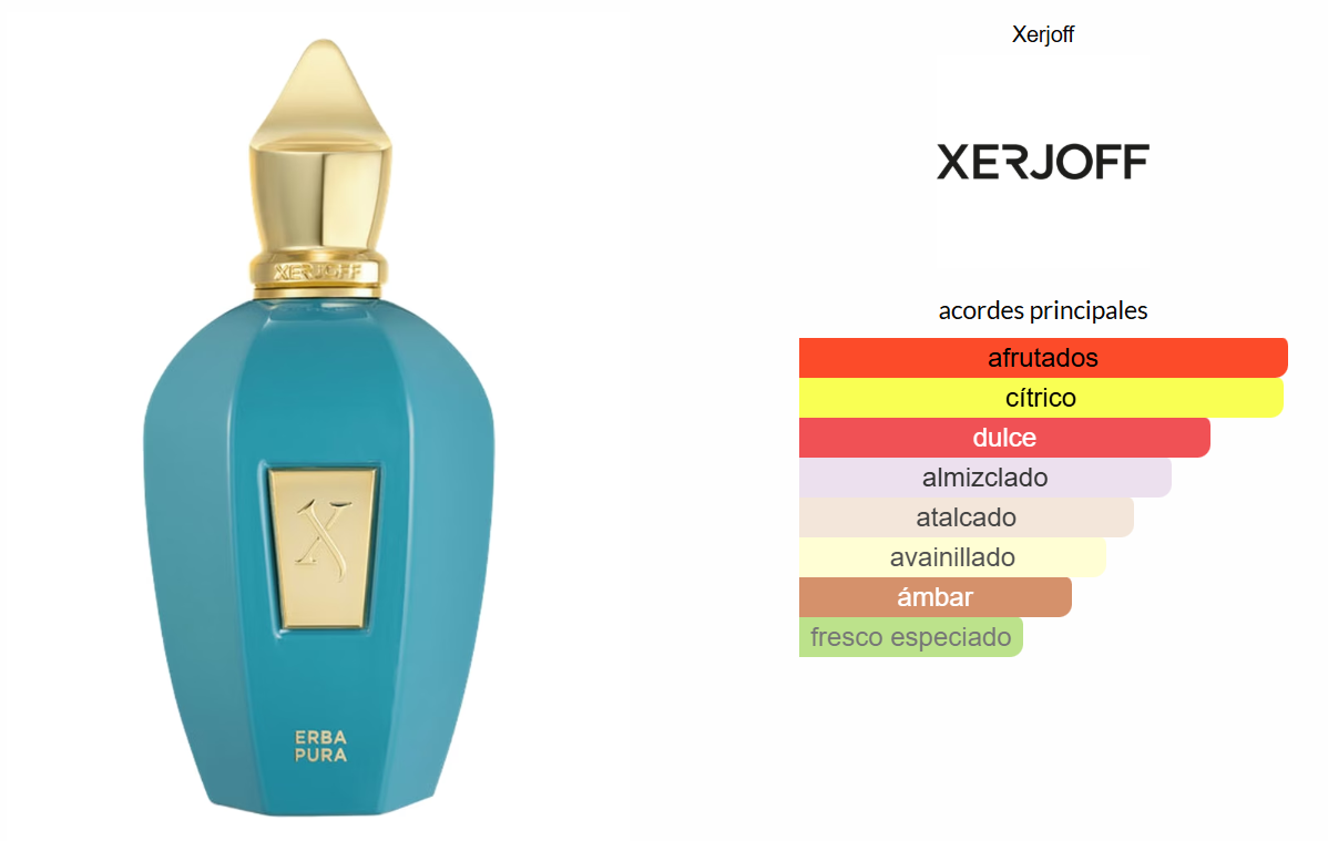Erba Pura es una de las fragancias más icónicas de la casa Xerjoff, reconocida por su carácter alegre, vibrante y sofisticado. Su apertura jugosa de frutas mediterráneas se funde con un corazón aterciopelado y un fondo ambarado y almizclado que envuelve la piel con calidez y elegancia.